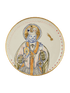 Hand-painted Gunia plate with St. Nicholas motif. The plate has golden details on the edges and small motifs of a gold-plated star. Suitable for special occasions and everyday use. Made from porcelain.