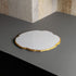 Mramorový tác s ručně pozlacenými okraji. Každý kus je unikátní a ručně vyráběný, přinášející eleganci a jedinečnost do vašeho interiéru. Ideální pro servírování i dekoraci.