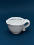 Ručně vyráběný hrnek na cappuccino z bílé keramiky s lesklou glazurou. Kolekce The Issues přináší ironii i svůdnost do každodenního stolování. Zdoben modrými nápisy.