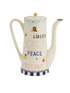 Ručně malovaná barevná konvice Gunia se zlatými detaily a nápisy "Svoboda" v různých jazycích. Má víčko se zlatým kulatým držátkem. Je vhodná pro speciální příležitosti i každodenní použití. Vyrobeno z porcelánu.