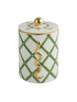 Ručně malovaná porcelánová cukřenka Constellation zdobená zeleným mřížkovým vzorem, zlatými akcenty a elegantním motivem hada. Skvělá pro speciální příležitosti i každodenní stolování. Vyrobená z porcelánu.