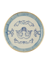 Ručně malovaný modrý kulatý talíř Gunia s motivem mořské panny a zlatými detaily v okrajích inspirovaný Ukrajinskými naivními kresbami se vzpomínkami na léto a sny. Ideální pro zvláštní příležitosti i každodenní použití. Vyrobeno z porcelánu.
