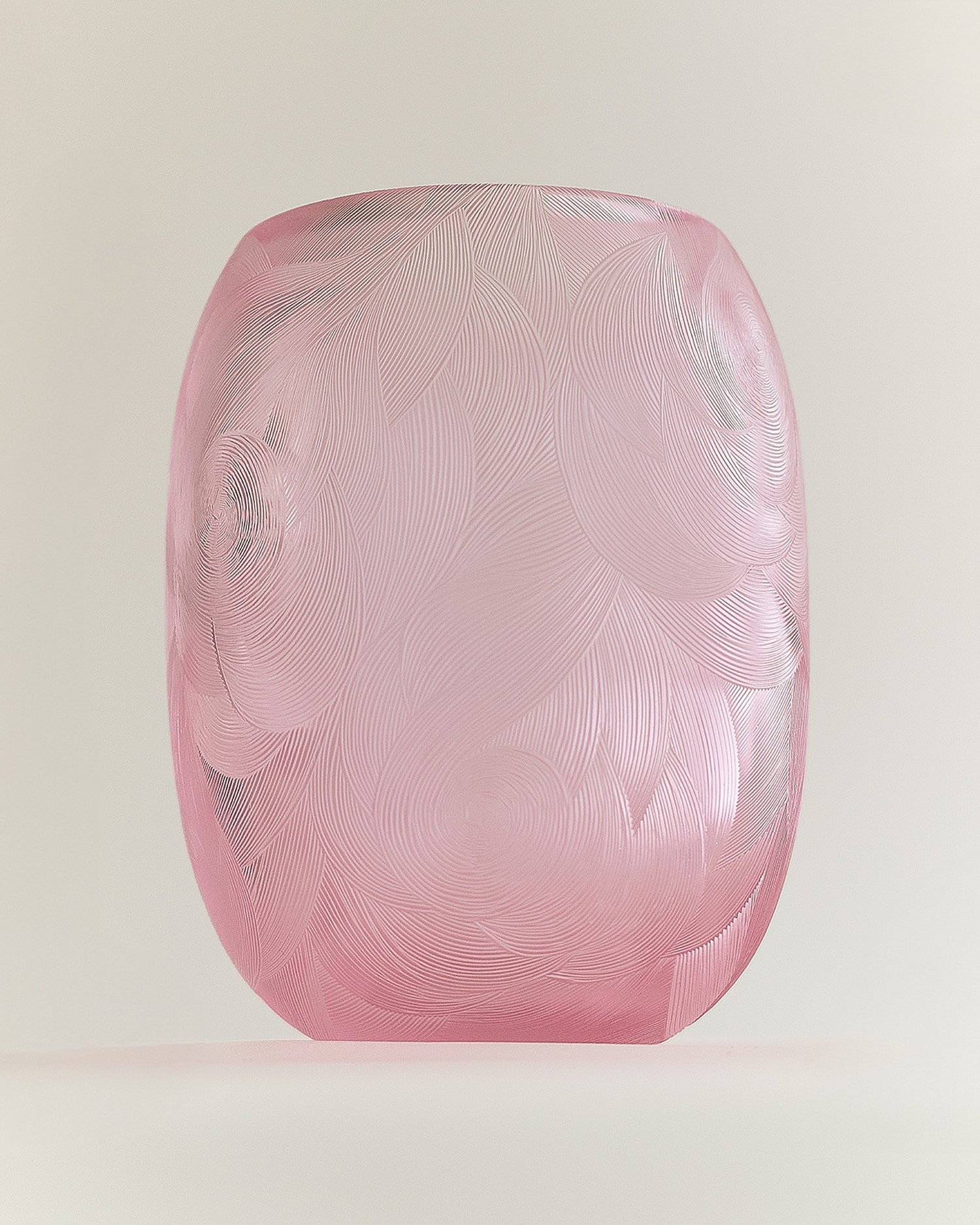 “Leonardo da Vinci’s intricate drawings—his reverence for nature—sparked something deep within me. These vases are my offering: sacred and deeply human.” Each design is a personal meditation, etched into glass to evoke something ancient, intimate, and powerful.