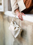 Take care of your leather handbag regularly with a leather balm. The lining can be cleaned by hand with soapy water and a brush. Do not dry clean / Do not iron / Unwashable