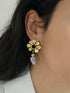 These intriguing Scale Earrings showcase the petals of a flower, with a moonstone hanging from the base. Moonstone is said to strengthen the inner parts of the human body and lessen stress. Wear this piece for a stunning effect both inside and out.