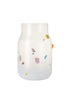 The colors and shapes of the Konfeta collection reflect the theme of “Celebrating Life.” Their surfaces are covered with collages of colorful glass fragments, suggesting unexpected moments of surprise and the exuberant festive mood of celebrations. The colorful confetti elements are made of solid pigmented glass - a material commonly used to color molten glass during the glassblowing process. They have rock-like shapes that contrast with the otherwise softly shaped bodies of hand-blown glass. With their irregular edges, these fragments evoke the appearance of rough brush strokes, transforming the act of attaching them into a form of painting. Each piece is unique.