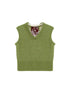 Lace-trimmed Vest in Green. V-neck, wide elastic band, handcrafted embroidery. A detachable lace embellishes the neckline, allowing the vest to adapt to different moods and occasions. Wear it as an extra layer or a main piece. Use it as a basic wardrobe staple or as a gift that blends the warmth of the garment with the traditional craftsmanship of Gunia's artisans.