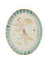 Ručně malovaný modro růžový oválný talíř Gunia s motivem anděla inspirovaný ukrajinskými naivními malbami s pozlacenými okraji a andělskými křídly. Ideální pro speciální příležitosti i každodenní použití. Vyrobený z porcelánu.
