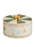 Ručně malovaná zeleno růžová kulatá cukřenka Gunia s motivy holubic, inspirovanými Ukrajinskými naivními kresbami. Má víčko z pozlacenými detailem ve tvaru holubice. Vhodná pro speciální příležitosti i každodenní použití. Vyrobeno z porcelánu.